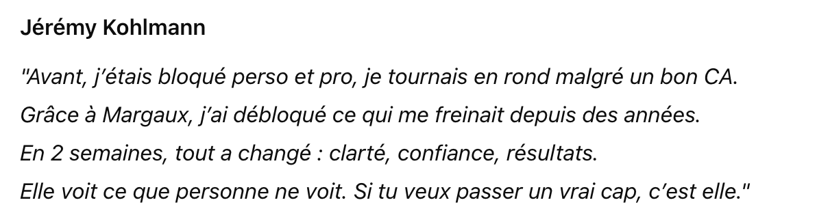 👉 Si tu assistes à l’atelier, que tu prends des notes, 👉 Et qu’à la fin, tu te dis “Franchement c’était HYPER NUL, 100% BULLSHIT ”→ Tu m’écris, et je te rembourse.